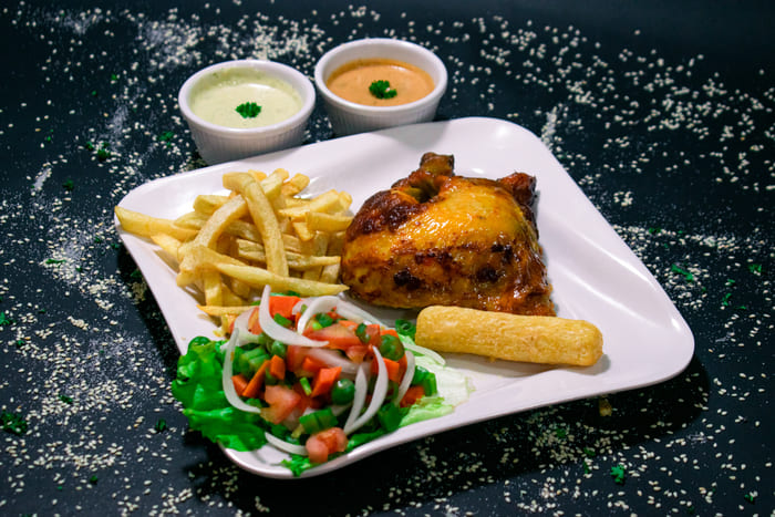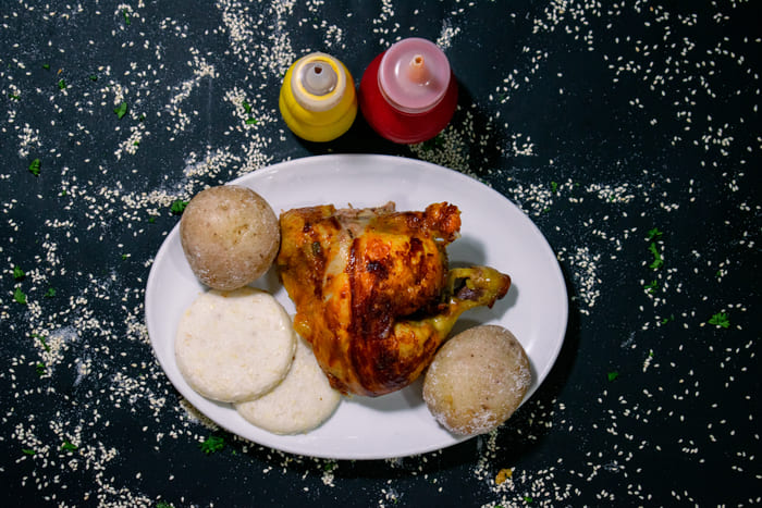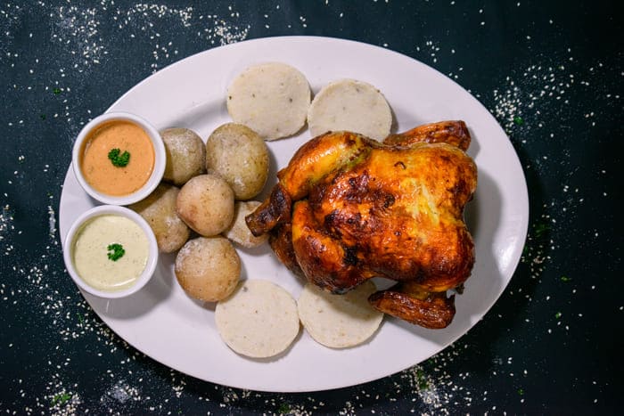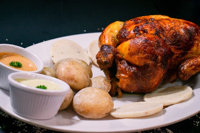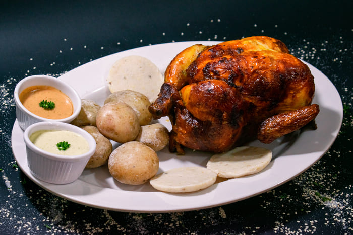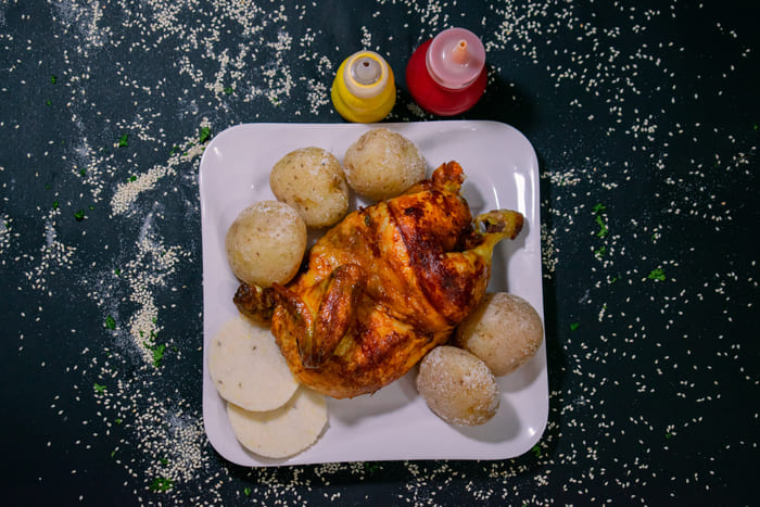 Pedimos el pollo asado a domicilio y estaba sabroso, fresco y jugoso.
